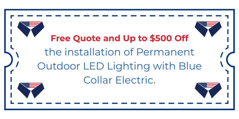 Bring your home to life with permanent outdoor LED lighting and save while you do it. For a limited time, Blue Collar Electric is offering a free quote and up to $500 off installation on all new permanent outdoor lighting systems. These low-profile, energy-efficient lights are built into your home’s trim and designed to handle Florida weather. Perfect for holidays, game days, and everyday curb appeal, permanent outdoor lighting adds both beauty and security to your home — no ladders or tangled lights required. Schedule your free quote today and make your home shine year-round.